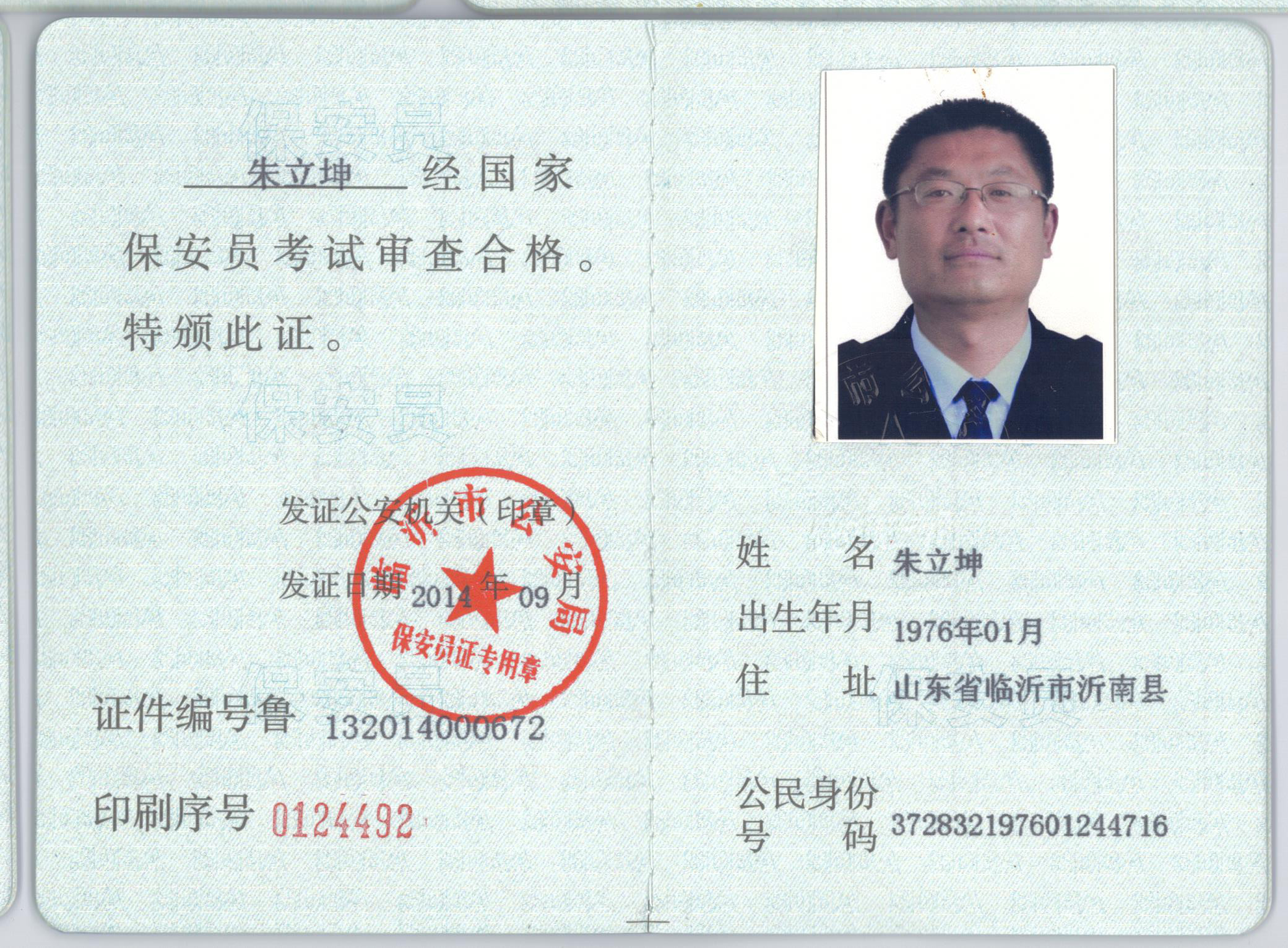 保安派驻证