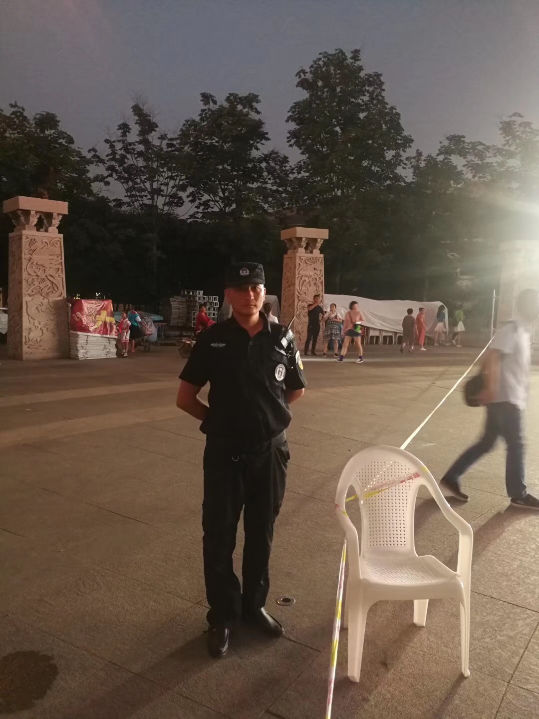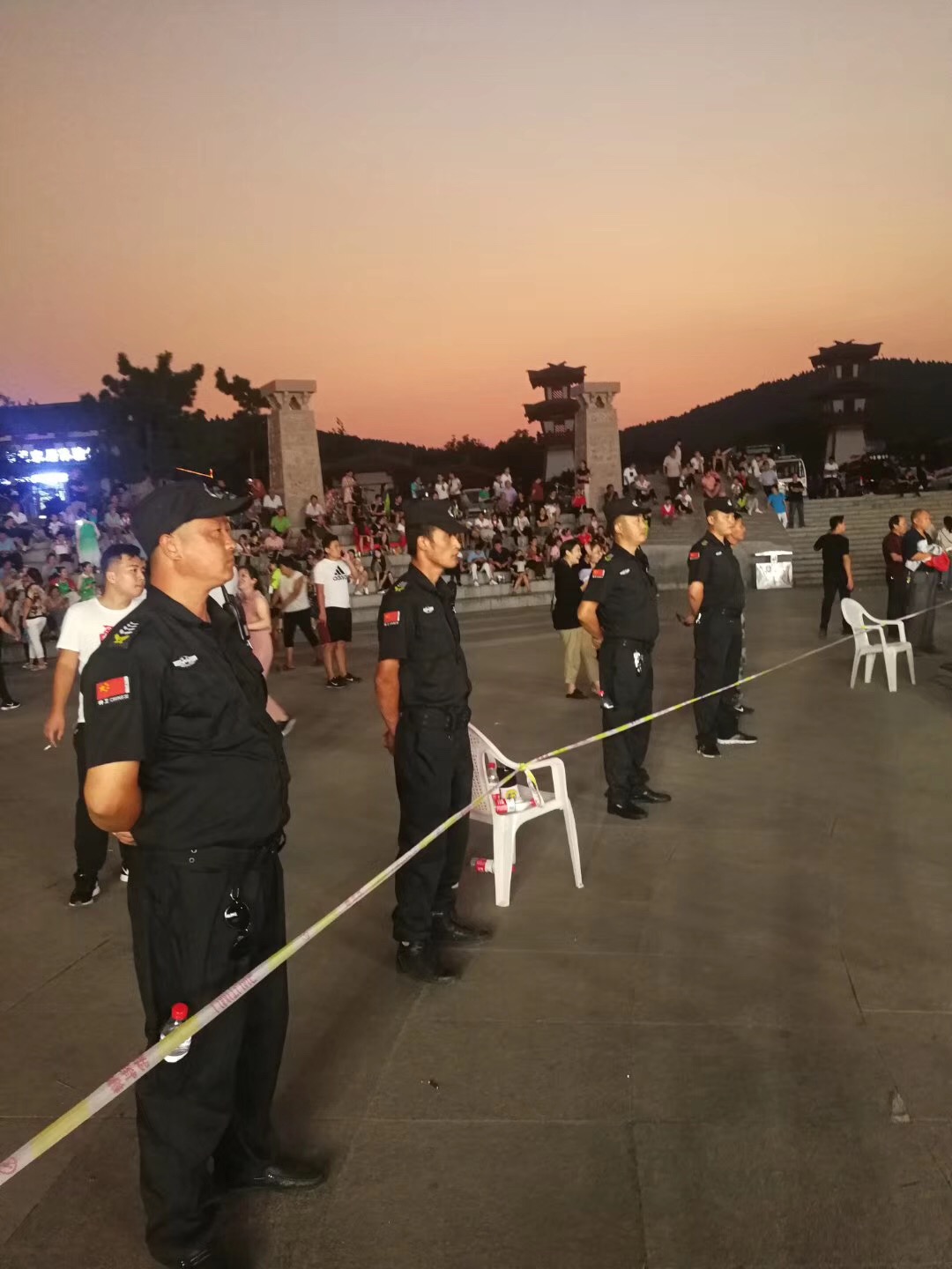 沂南县第十五届广场文化艺术节教育专场即将开始,特卫队员在现场认真巡场